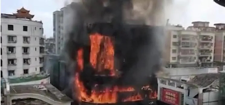突发,广东清远一大厦失火,整栋外墙烧成一片