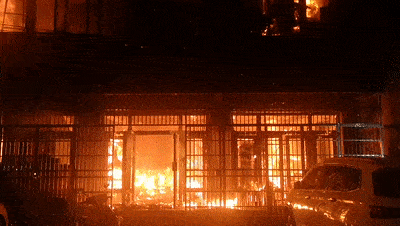 屋内熊熊大火,母女二人被困火场,幸亏消防员及时赶到……
