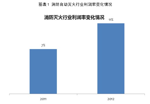 根据消防自动灭火行业上市公司公开信息以及对消防自动灭火行业企业调查,消防自动灭火行业目前利润率相对较低,2012年行业平均利润率约11%,相较于2011年行业平均7%的利润率仍然呈增长趋势,增长速度相对平缓。