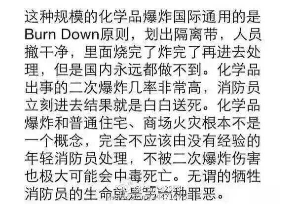 在众多纷繁复杂的天津火灾消息中,一个扎眼的英文词组不断的跳跃——Burn Down原则。