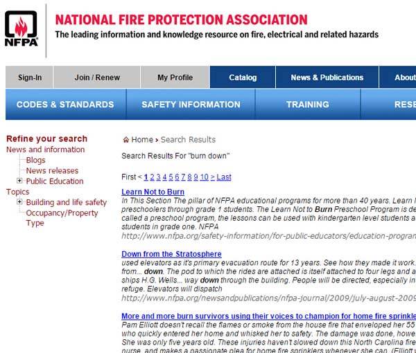 好,我们来消防这个行业最专业的——美国消防协会(National Fire Protection Association,NFPA)看看。