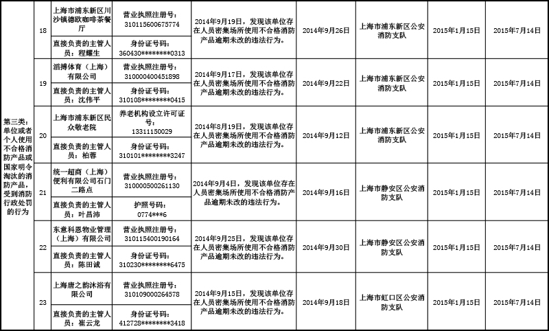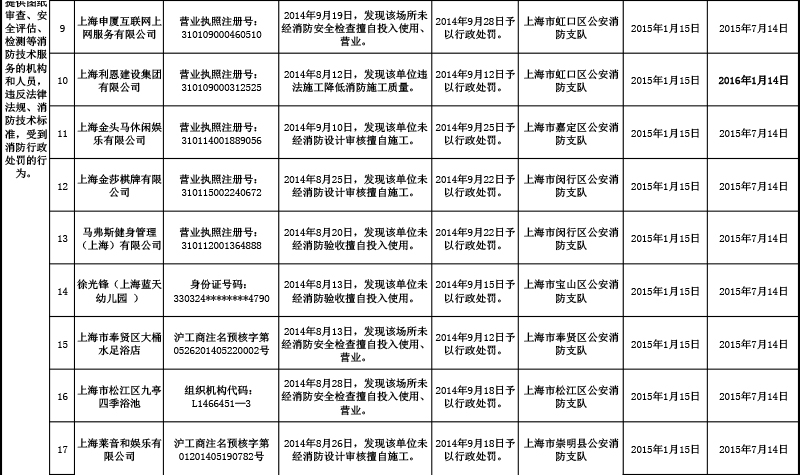 消防安全不良行为公布制度是创新社会消防管理模式,通过社会信用、市场管理手段,强化社会单位、个人履行消防安全职责的有力措施。为不断增加单位和个人遵守消防法律法规、履行消防安全职责的自觉性,营造全社会监督消防安全违法行为的良好氛围,现将本市2015年1月份消防安全不良行为信息通告如下: