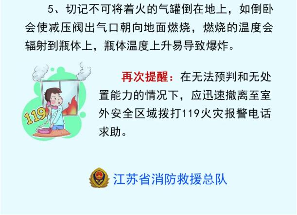 消防救援人员到场后发现,现场为厨房里的煤气罐起火,引燃了一旁的大豆、玉米。消防救援人员立即出水枪对明火进行扑救,并将已经倒地的煤气罐拎出,10分钟左右,火灾被成功扑灭。