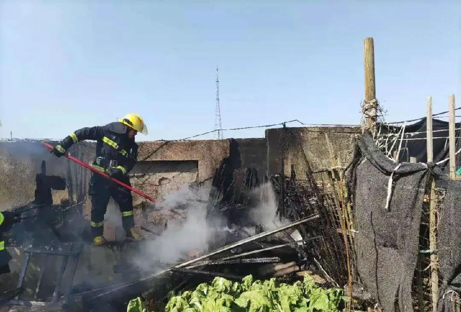 ,但添完柴火之后火越来越大,直接将房顶烧塌,同时引燃旁边堆积的木材。
