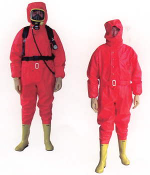 消防防化服主体胶布采用经阻燃增粘处理的锦丝绸布,双面涂覆阻燃防化面胶制成,主体胶布遇火只产生炭化,不溶滴,又能保持良好强度。主体胶布经贴合-缝制-贴条工艺制成,服装主体和手套,并配以阻燃、耐电压、抗穿刺靴或消防胶靴构成整套服装。